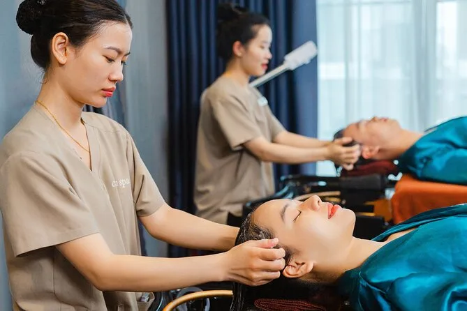 Non mi aspettavo di sentirmi così rilassato appena entrato da Cam On Spa — c’era un’atmosfera di calma, come se la città fuori fosse messa in pausa. La donna alla reception mi ha offerto una tazza di tè caldo (un aroma floreale che non riuscivo a identificare), e ho pensato: “Forse ne avevo proprio bisogno.” La nostra terapista locale, Linh, ha sorriso e mi ha chiesto se avessi mai provato un lavaggio capelli alle erbe in stile Hue. Non l’avevo mai fatto — ero soprattutto curioso del trattamento viso al giada.