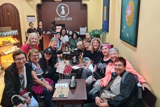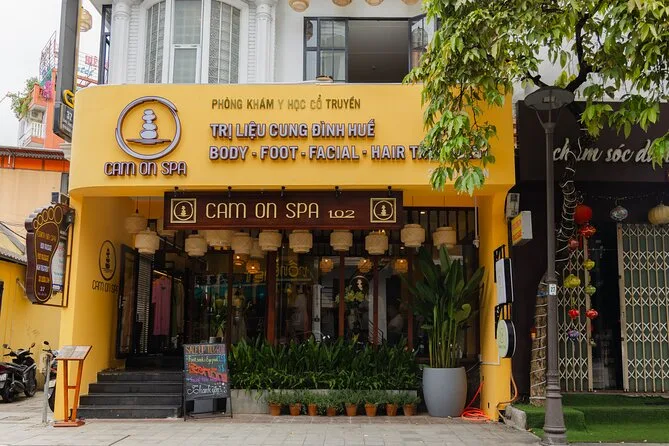 La tua visita comprende un lavaggio capelli alle erbe appena preparato con massaggio a testa, collo e spalle per un’ora, seguito da trenta minuti di trattamento viso al giada e un pediluvio imperiale alle erbe di dieci minuti. All’arrivo sarai accolto con tè locale o acqua minerale e dopo il trattamento potrai gustare una panna cotta con altra acqua minerale prima di tornare a immergerti nelle vivaci strade di Hue.