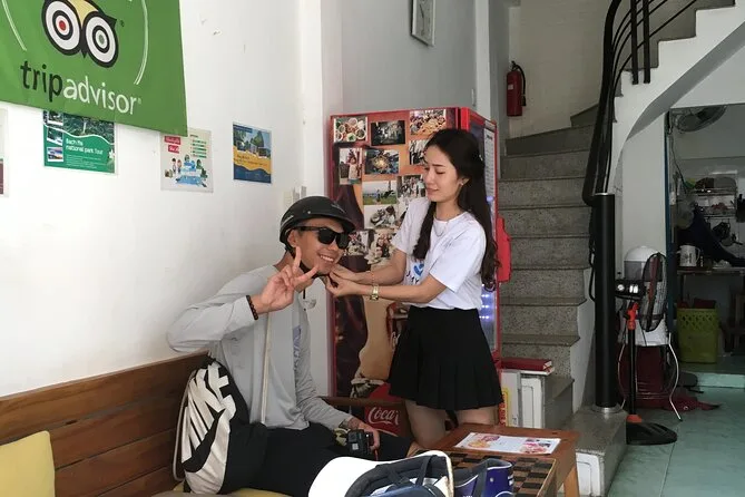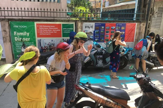 La tua giornata comprende visite guidate alle rovine del parco acquatico Ho Thuy Tien, ai boschi di pini della collina Vong Canh, alla storica Pagoda Thien Mu e all’elegante Palazzo An Dinh — il tutto accompagnato da simpatici studenti locali che condividono storie mentre esplorate Hue in moto insieme (caschi inclusi).