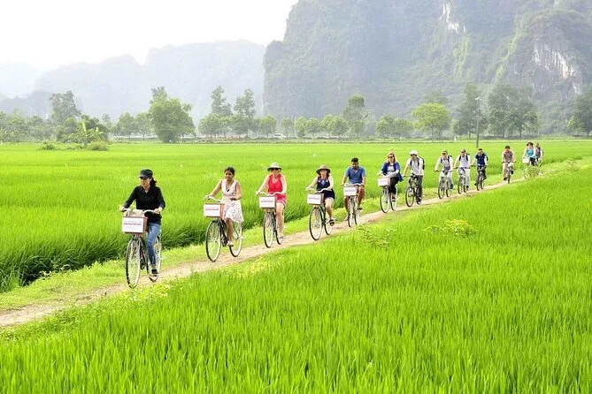 Scivolerai tra le grotte di Tam Coc su una piccola barca (attenzione alla testa!), pedalerai tra i campi di riso con una guida locale, condividerai storie durante un pranzo vietnamita e salirai a Mua Cave per viste spettacolari sulla campagna—tutto in un giorno partendo da Hanoi. Aspettati volti amichevoli, cibo semplice ma delizioso e momenti di pace anche tra sconosciuti.
