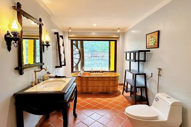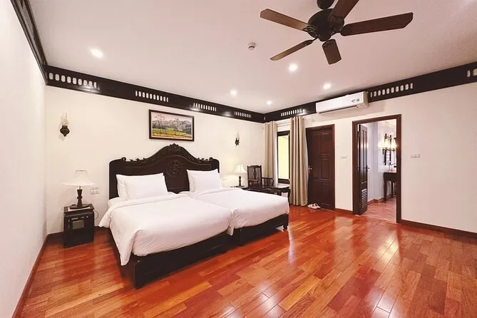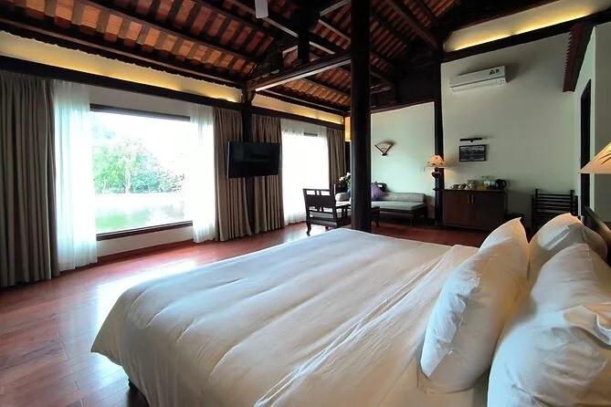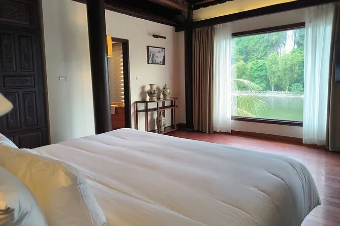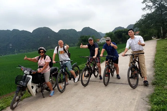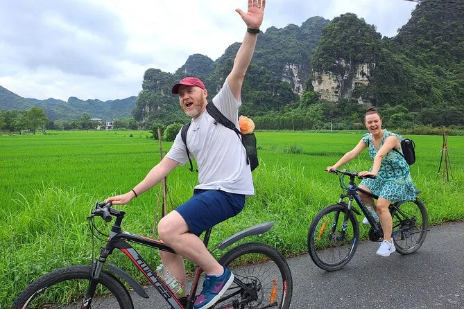 Il viaggio include trasferimenti confortevoli in limousine D-car da Hanoi con servizio pick-up, pernottamento in resort o hotel 4 stelle a Ninh Binh, tutti i biglietti per attrazioni come Tam Coc e la capitale antica Hoa Lu, attività guidate in bici con bici sportive fornite, colazione, pranzo con specialità del Nord Vietnam condiviso con una famiglia locale, pause tè tra i campi di riso, cena in struttura e guida locale in inglese per tutta la durata.