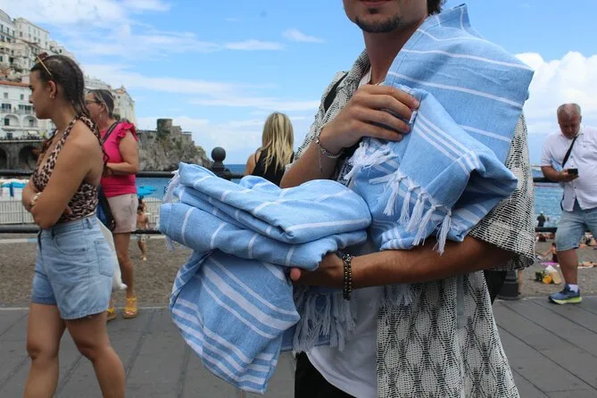 Your day includes round-trip transportation by air-conditioned minibus with pickup near your hotel in Naples, guidance from an English-speaking driver-escort throughout Positano, Amalfi & Sorrento stops, use of beach towels if needed, parking fees covered at each village, plus a playful limoncello lottery on your way back home.