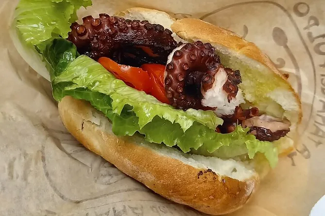 Bottled water is included throughout; a cold beer is served with the octopus sandwich stop.