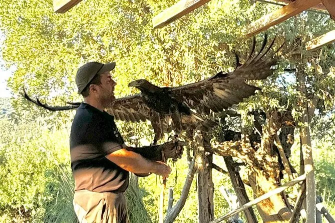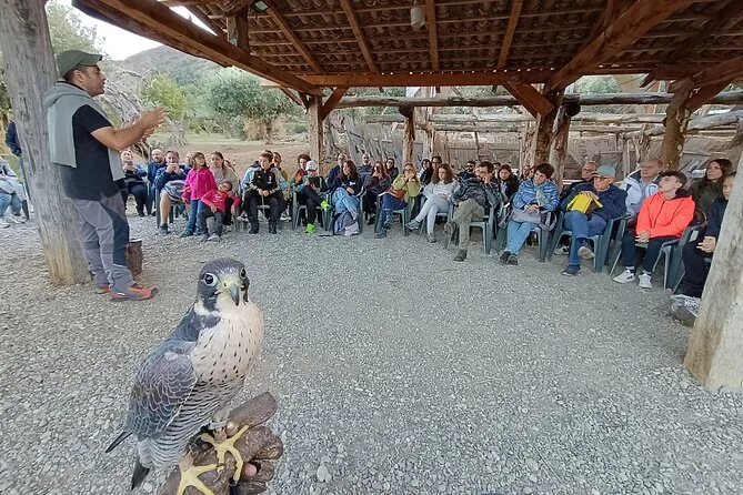 Your day includes entry to Setteventi del Pollino in Calabria, an official guide leading interactive workshops on birds of prey and rural culture, use of a falconer’s glove for direct interaction with eagles or owls, plus access to reserved parking right by the center—all designed for easy access regardless of age or mobility.