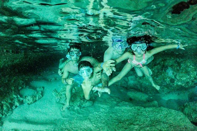 Your day includes use of snorkeling equipment—masks, snorkels, jackets—and guidance from a local skipper as you visit five distinct swimming spots along the coast before returning to your starting point.