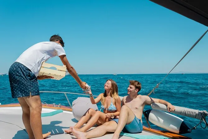Your day includes pickup by minivan from central Naples to Sorrento’s port, an English-speaking local skipper throughout the small group boat tour around Capri with stops at grottos and famous sights like Faraglioni rocks. You’ll enjoy a Caprese sandwich lunch with snacks plus soft drinks, beer or wine onboard — finished off with homemade limoncello before heading back in the evening.