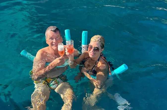 Your day includes all beverages like prosecco and soda, fresh Caprese salad snacks with local mozzarella and tomatoes, use of towels and snorkel gear for swimming stops at grottos or coves, plus English commentary throughout—and yes, there’s a restroom on board if you need it before heading back to port.