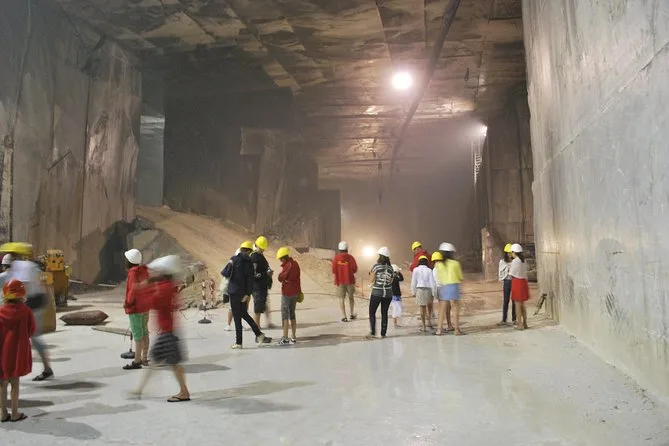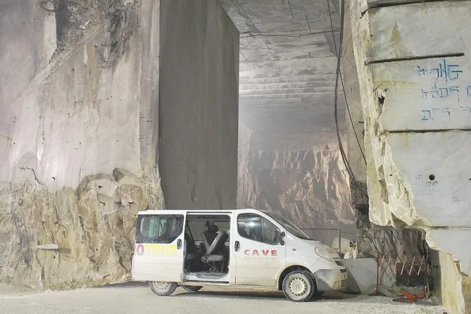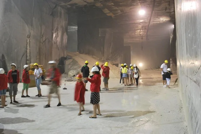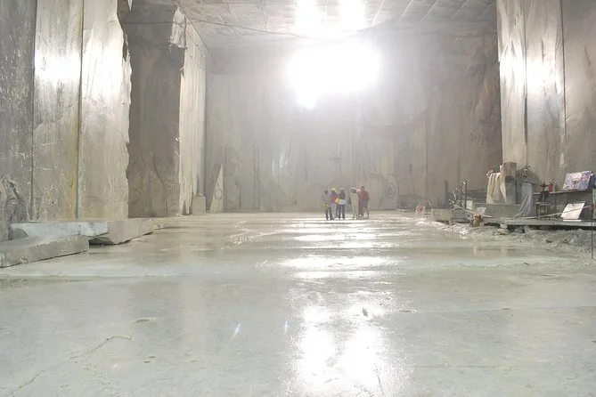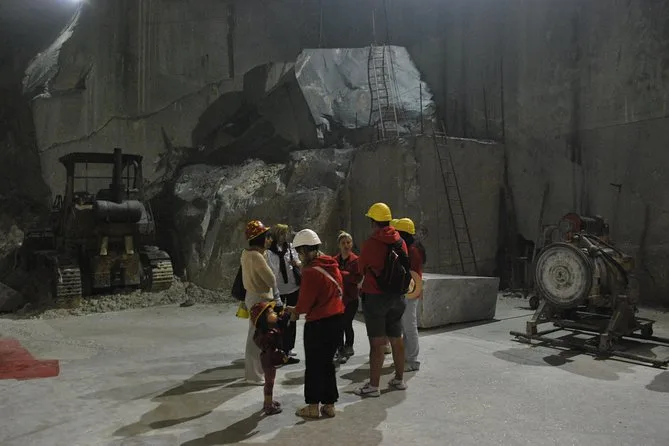 We had the option to switch to a 4WD for a closer look inside the quarry. It’s loud—machines grinding, trucks rumbling past—and there’s a faint tang of stone dust in the air. The workers waved as we passed; one guy even stopped to show us a chunk of raw marble streaked with gray veins. It’s a bit surreal thinking this is where David’s marble came from.