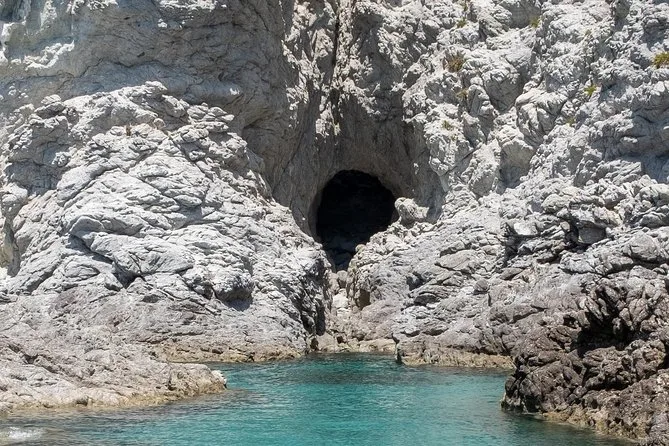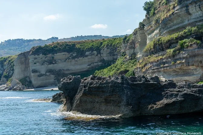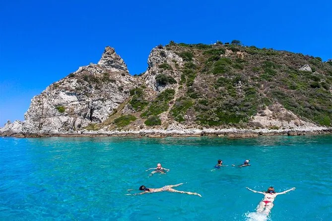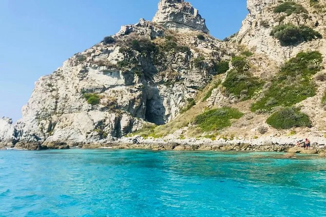 You’ll visit Grotticelle Bay, Praia i Focu beach (only reachable by sea), Grotta dello Skeleton cave, Riaci Bay, Formicoli ruins area, and see Tropea's cliffs and monastery.