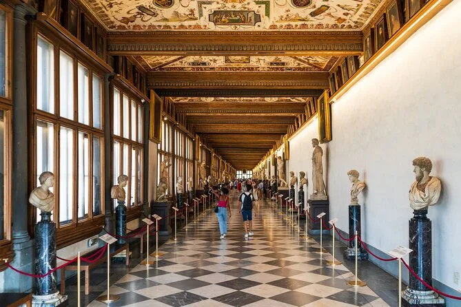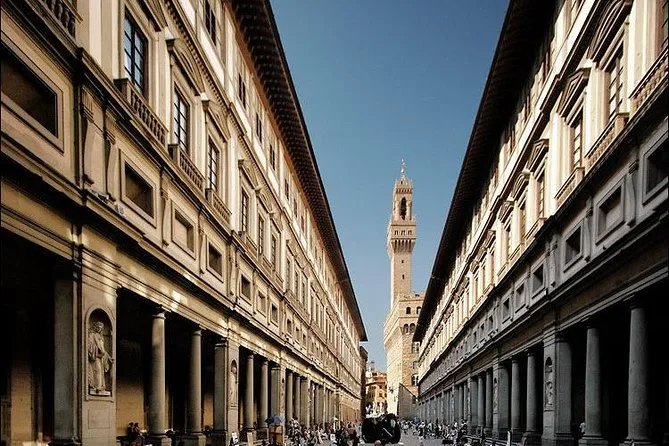 Your day includes a timed entry ticket for Florence’s Uffizi Gallery so you can skip long queues, plus an English-speaking guide if you choose the small-group option (with headsets for easy listening). The experience ends on the gallery’s rooftop terrace overlooking Florence — no hotel pickup needed as public transport is nearby.