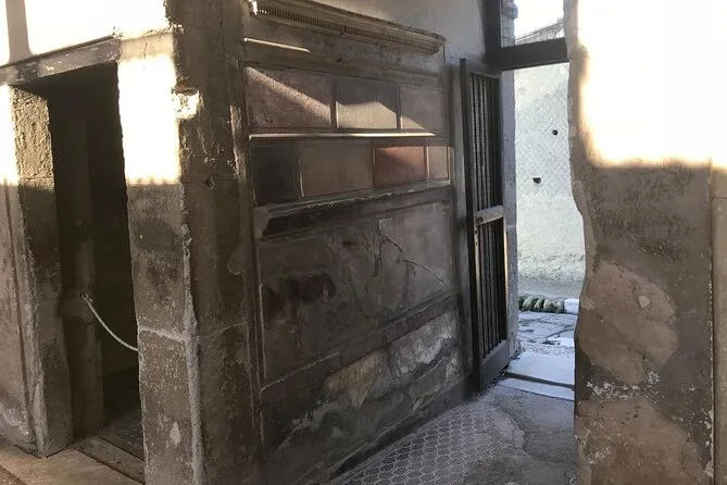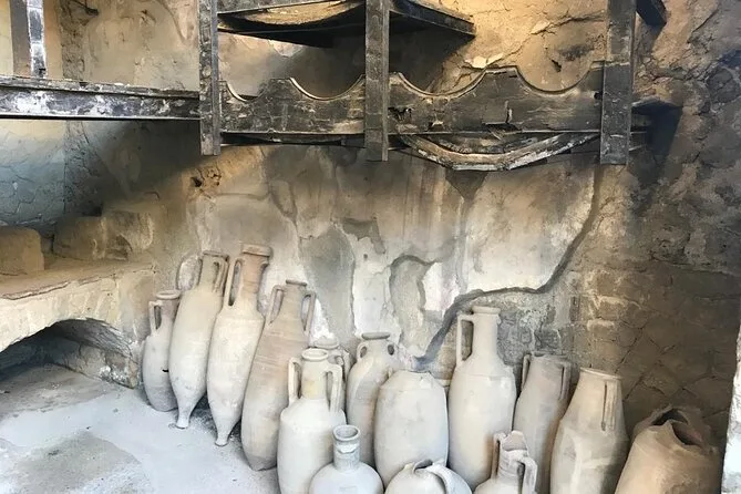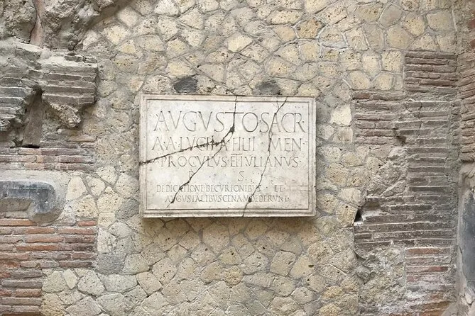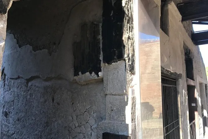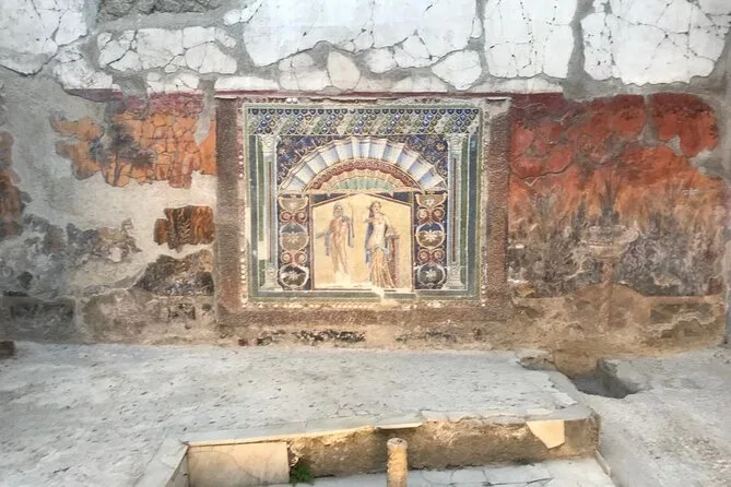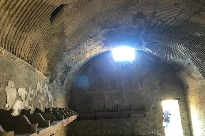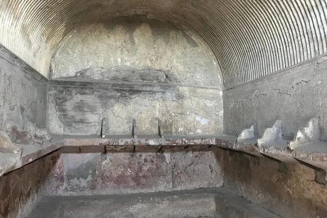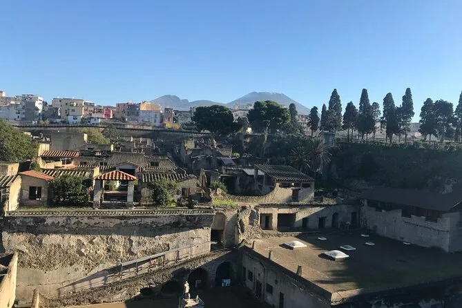 Your visit includes entry to Herculaneum Archaeological Park and a guided walk led by a licensed Regione Campania guide—exploring private homes, Roman shops, public baths, main streets, plus time at the ancient beach area where skeletons remain preserved since 79 A.D.; suitable for all fitness levels with stroller access and service animals welcome.