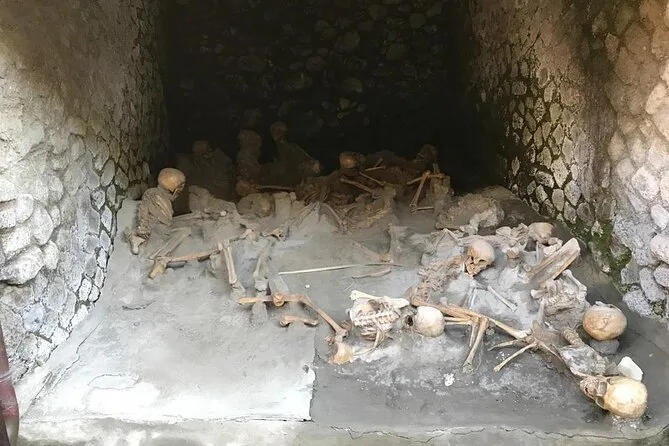 You’ll visit private houses like House of Neptune and Amphitrite, Roman shops, public baths, main streets, and the ancient beach area with preserved skeletons and a wooden boat.