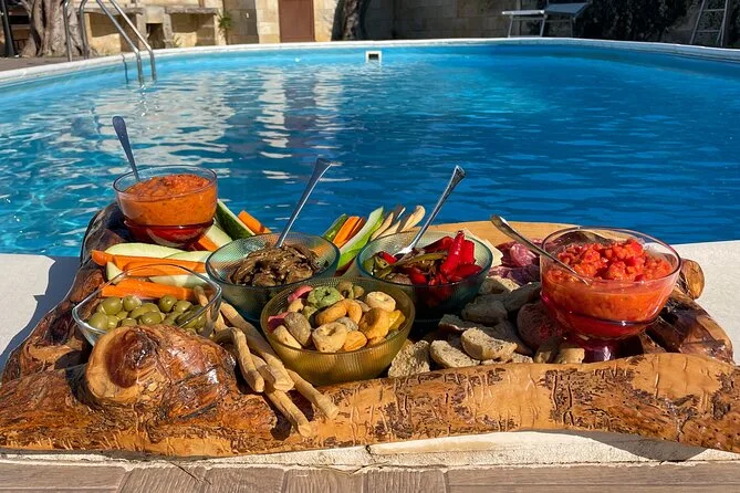 Your evening includes a hands-on Apulian cooking class using seasonal ingredients from Enza’s garden in Corigliano d’Otranto near Lecce; dinner featuring handmade orecchiette or maccheroni; local wines from Salento plus prosecco; homemade limoncello; coffee or tea; bottled water throughout; access to musical instruments and the private swimming pool—all shared in a warm family setting before you head back full and happy.