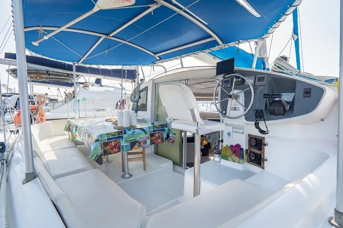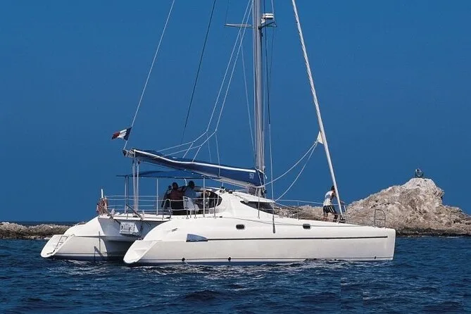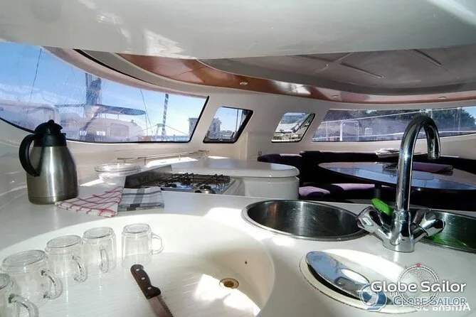 The boat is a 12-meter Fountaine Pajot Athena 38 catamaran.