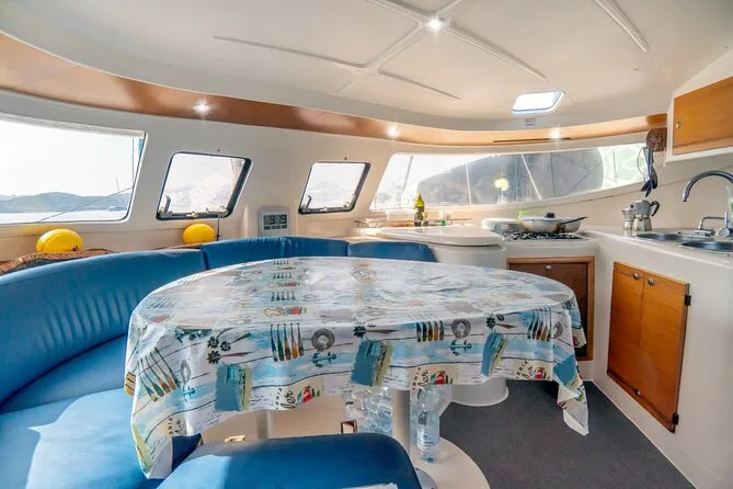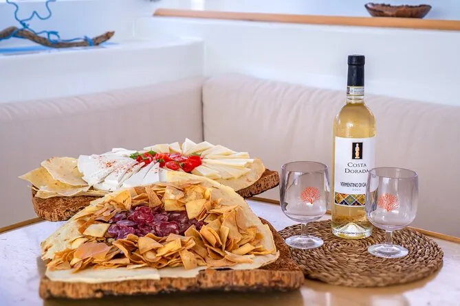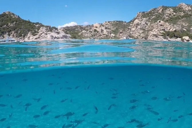 Your day includes boarding at Laconia port near Cannigione with all drinks—water, soda, coffee or tea—plus an aperitif featuring local products and Vermentino wine or beer. You’ll have lunch onboard (fish-based pasta or vegetarian option), use of snorkeling gear throughout stops at Spargi and Port of the Madonna, plus access to bathroom facilities before returning in the afternoon.