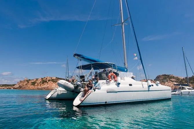 You’ll board a catamaran near Cannigione for a day trip through Maddalena Archipelago—swimming in Spargi’s turquoise bays, drifting past Budelli’s legendary Pink Beach, and sharing Sardinian pasta lunch with local wine on deck. Expect laughter, sun-warmed skin, quiet moments at sea—and maybe a nap in salty air before heading back.