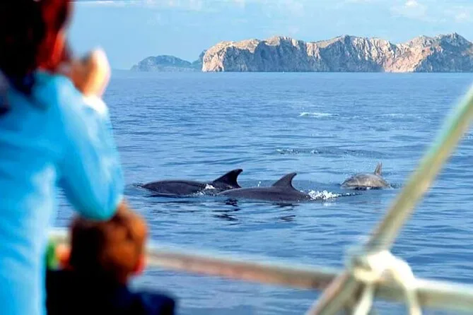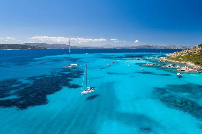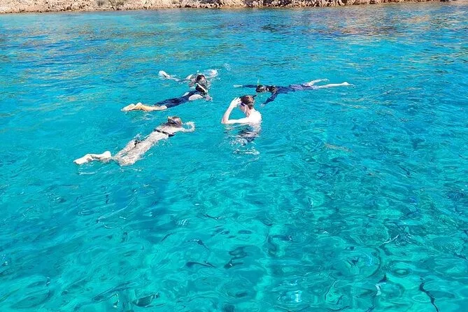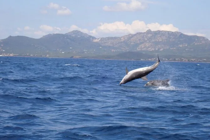 You’ll set off from Olbia’s marina for dolphin watching with local guides who know every fin in the bay. Snorkel twice—in Figarolo’s clear waters and Cala Moresca’s colorful bay—then relax with Sardinian snacks on deck as cliffs tower nearby. Expect laughter, salty air, and moments that linger long after you dry off.