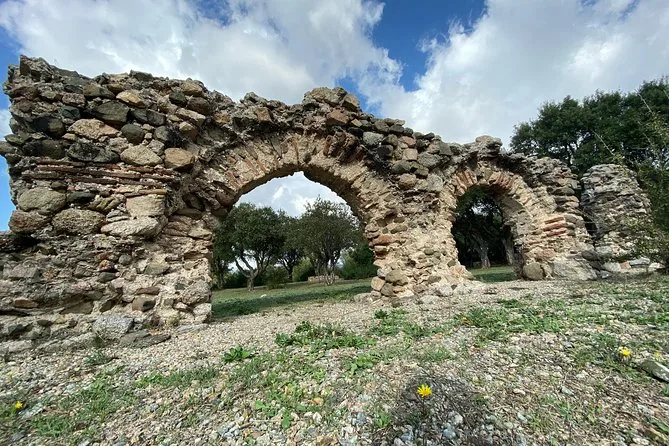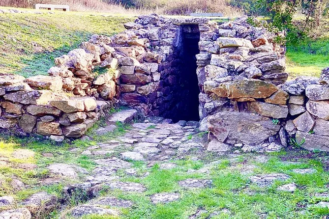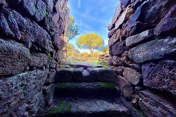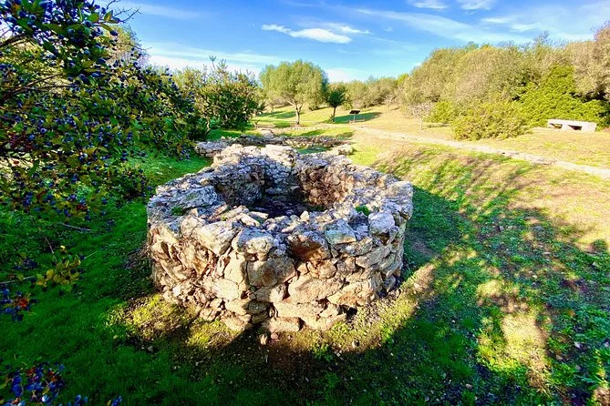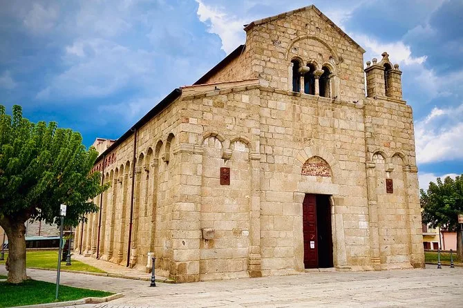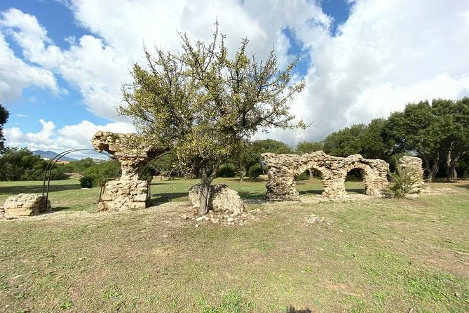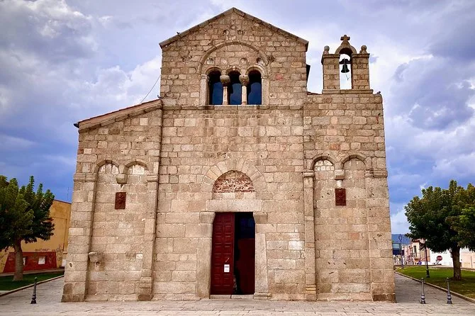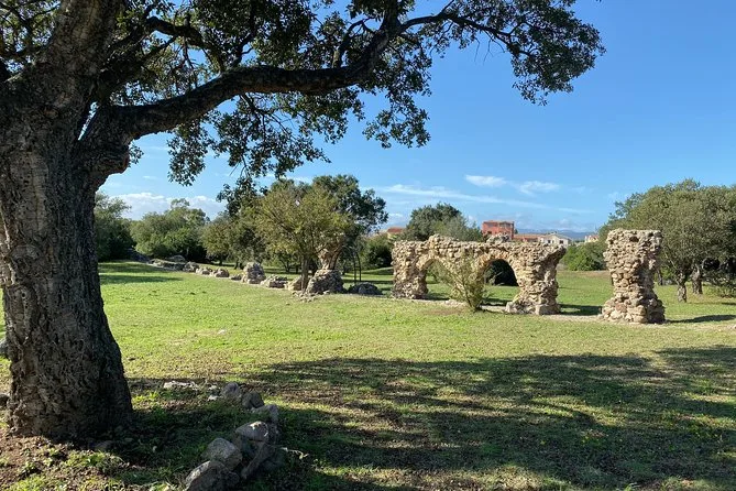 The tour stops at several sites including the Basilica of San Simplicio, Roman Aqueduct and Cistern, Sa Testa Sacred Well, Pedres Castle, Giants’ Tombs “Su Mont’e e S’Abe”, plus other points like Corso Umberto and Parco.