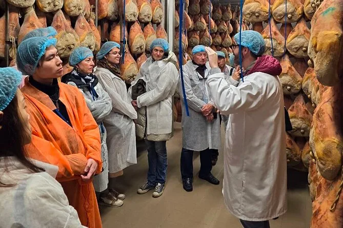 The tour lasts one full day including visits to cheese, ham, and balsamic producers before returning to Parma.
