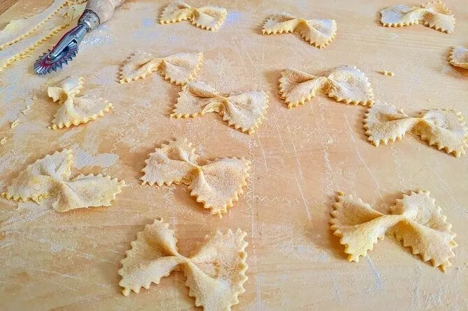 You’ll prepare a traditional starter (like stuffed eggplant or pepper), two types of homemade pasta with seasonal sauces, and a classic dessert such as Italian trifle or citrus pudding.
