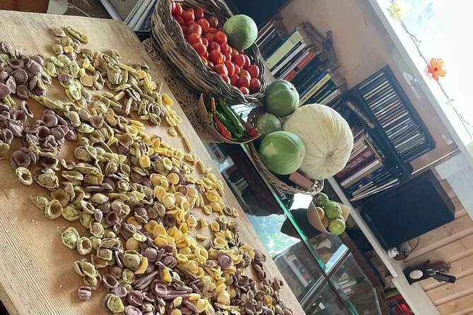 You’ll make orecchiette pasta with sauce (meat or vegetable), plus appetizers and seasonal sides.