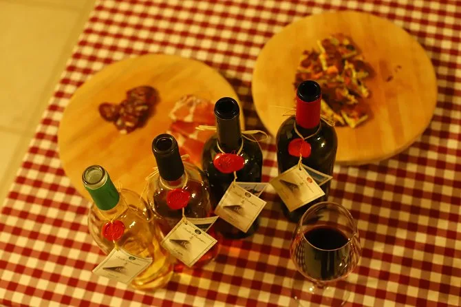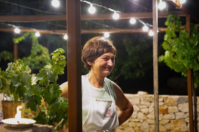 Your day includes a guided walk through Moscato di Trani vineyards near Trulli il Castagno in Puglia’s Itria Valley, an introduction to Apulian viticulture history by your local hosts Angela and her family, tastings of four estate wines each paired with different homemade regional foods like wood-fired bread and focaccia, plus plenty of relaxed conversation in their farmhouse tavern or overlooking the valley.