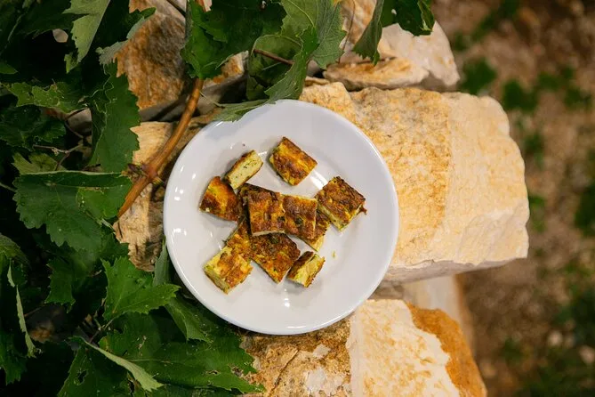 Yes, each wine is paired with homemade Apulian food such as wood-oven bread with EVO oil, cold cuts from Itria Valley, mint frittata, and focaccia.