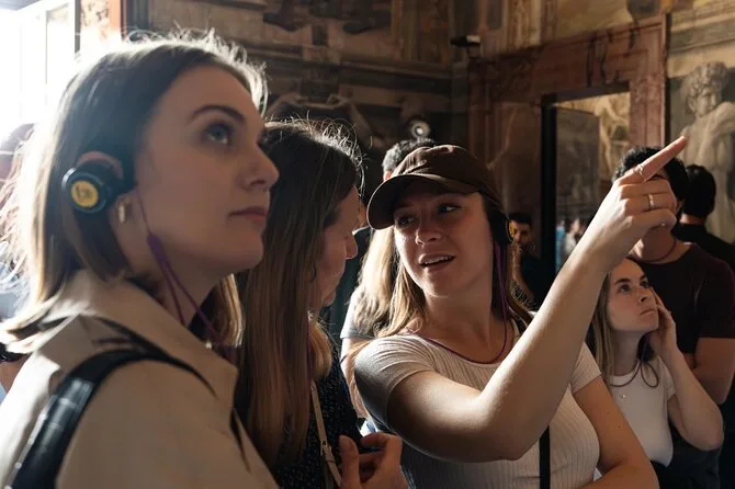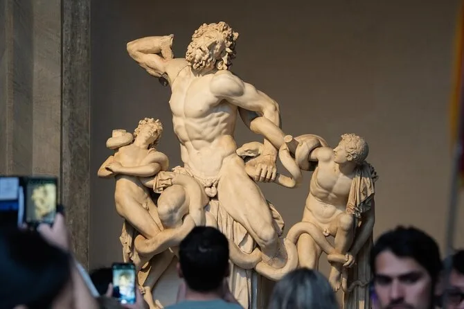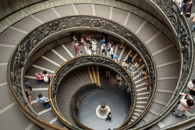 Back inside, St. Peter’s Basilica felt different after seeing it from above — heavier somehow, but also more alive. Marco showed us details I’d never have noticed on my own: marble veins running through statues’ hands, flickers of gold leaf catching stray sunlight near an altar where someone was quietly praying. We took a break (I needed water and maybe a pastry), then met again for the second part: weaving through crowds into the Vatican Museums with our fast-track tickets (felt almost guilty skipping that line). The museums are overwhelming — so many rooms, so much color and noise — but Marco knew when to pause for stories or let us just stand quietly.