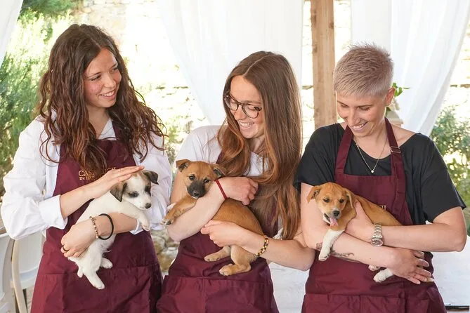 Your day at this family-run organic winery near San Gimignano includes a guided walk through vineyards, orchards, olive groves and cellars; tastings of eight estate-produced organic wines; fresh cheeses and cold cuts from local farms; vegetables straight from their garden; extra virgin olive oil sampling; artisanal chocolate pralines; bottled water; plus classic Tuscan dessert—cantucci biscuits dipped in Vin Santo—all enjoyed at your own pace before heading home full (and maybe just a bit tipsy).