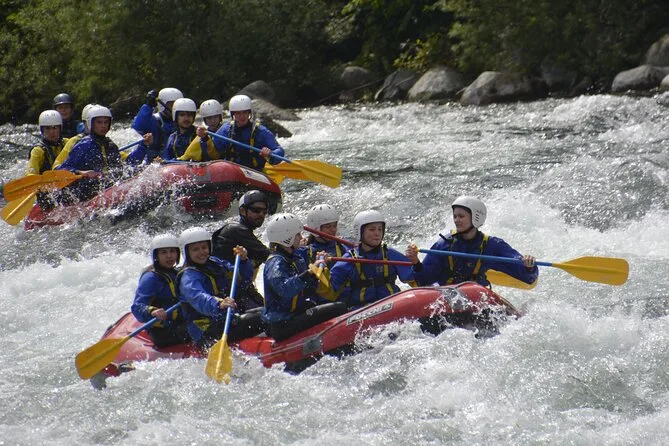 Your day includes a one-way private transfer by shuttle bus to the starting point on the Sesia River, all necessary rafting equipment provided onsite, and an expert local guide leading your group through class III-IV rapids before finishing at a calm stretch downstream.