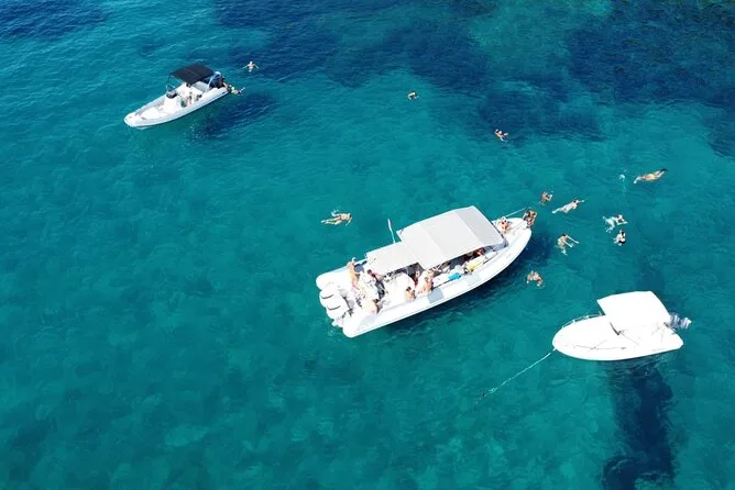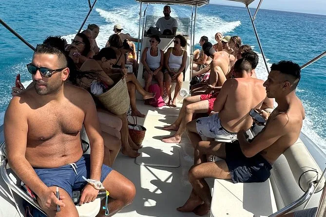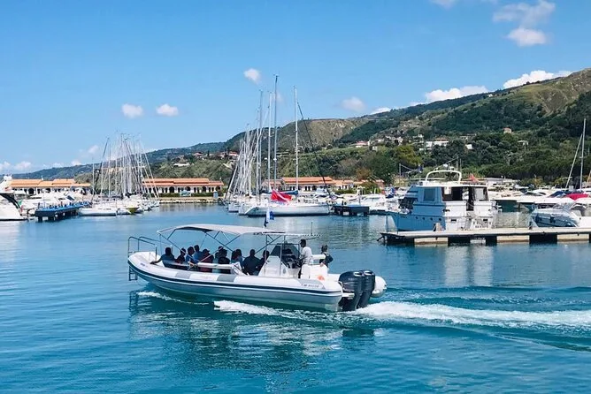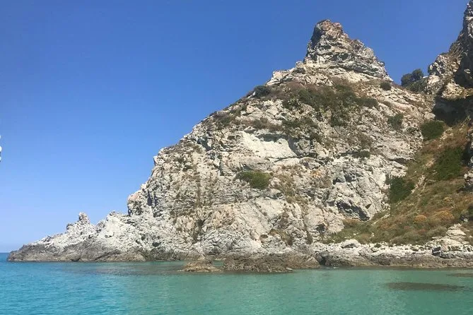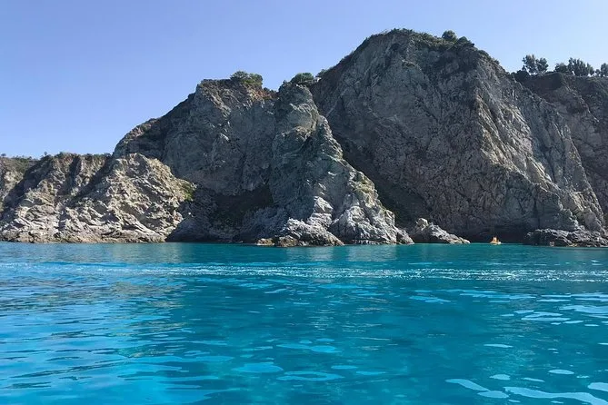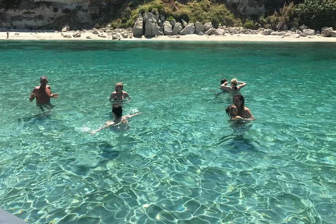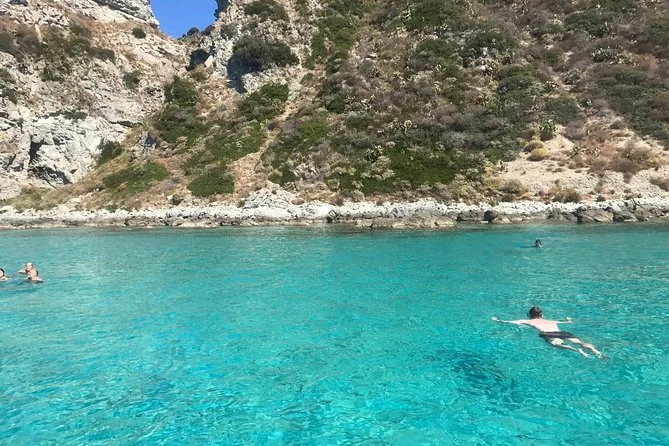 Your day includes a guided boat ride along Costa degli Dei from Tropea to Capo Vaticano with several stops for swimming and snorkeling (all equipment provided), plus bottled water, soda or pop throughout the trip, and a relaxed aperitif served on board before returning to port.