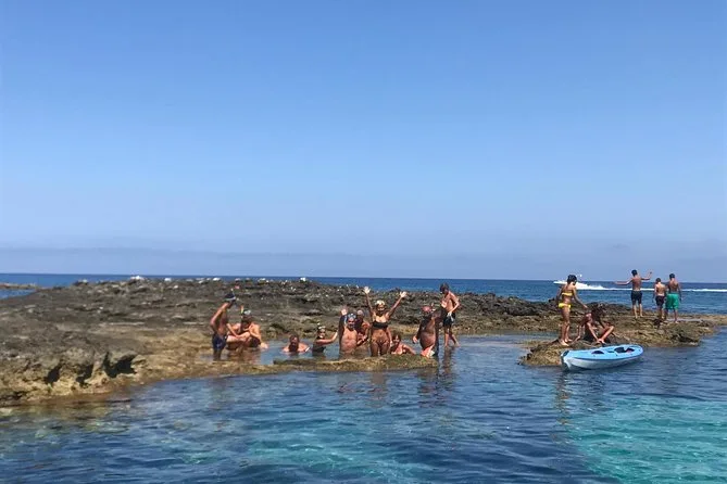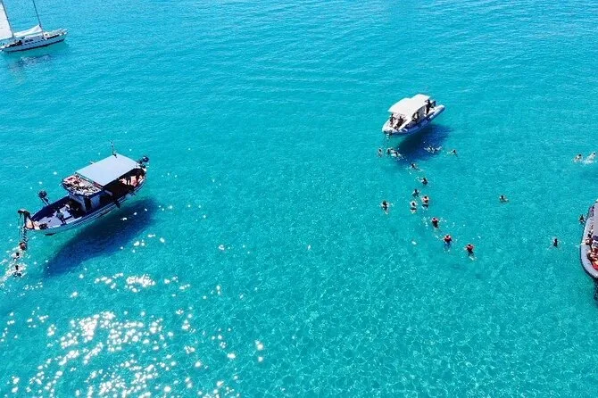 The excursion covers about 6 miles of coastline; exact duration isn’t specified but includes several stops for swimming and snorkeling.