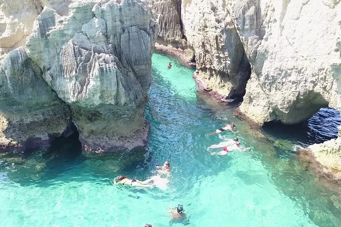 You’ll swim in caves like Skeleton Cave, snorkel at Forum Erculis Roman ruins, visit Pirate Lagoon and Praja di Fuoco beach.