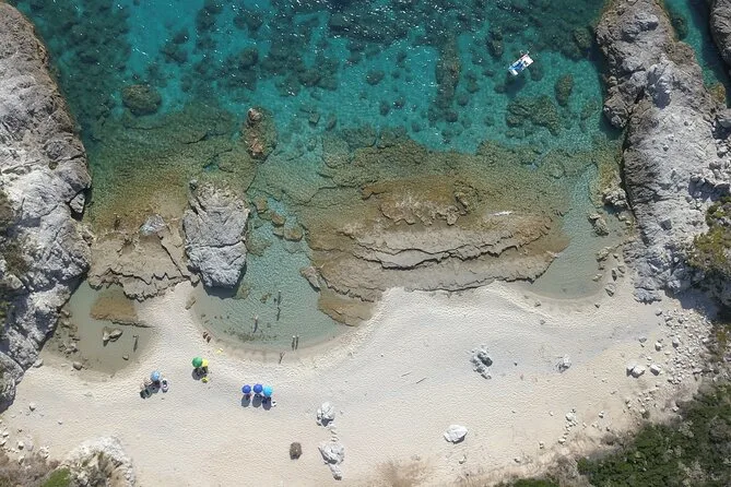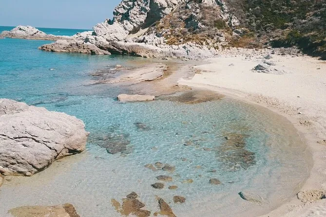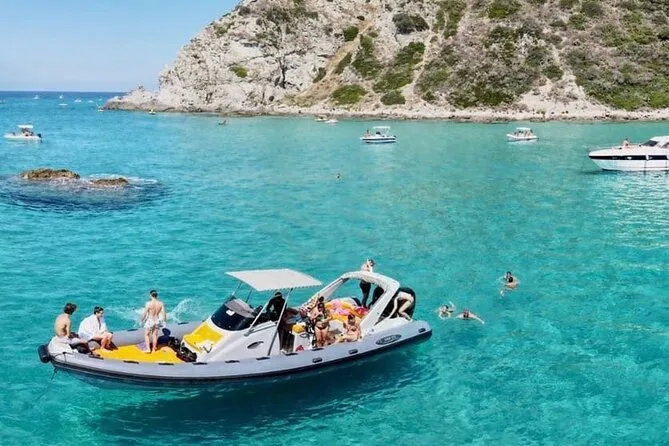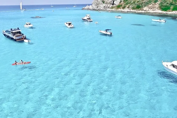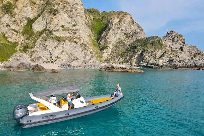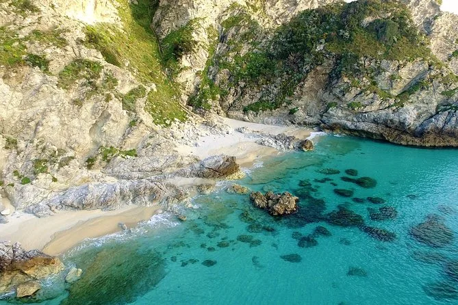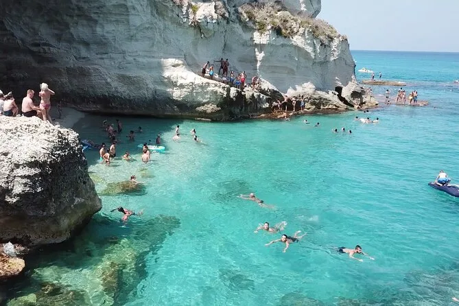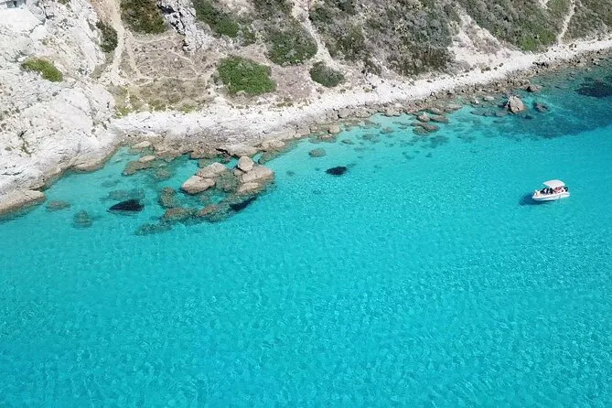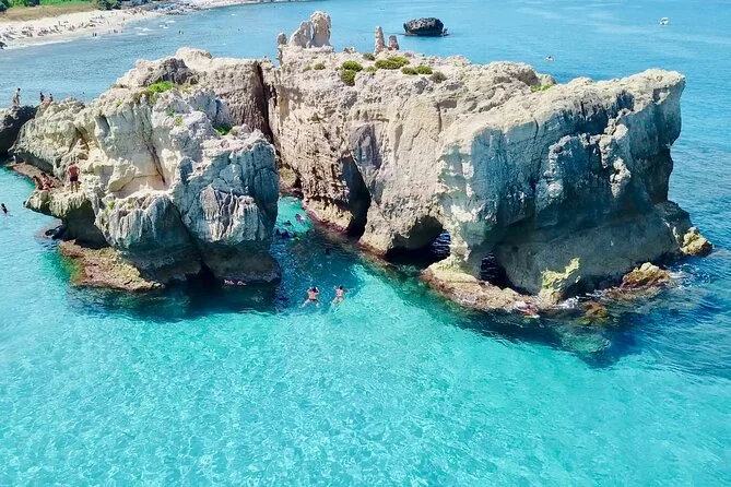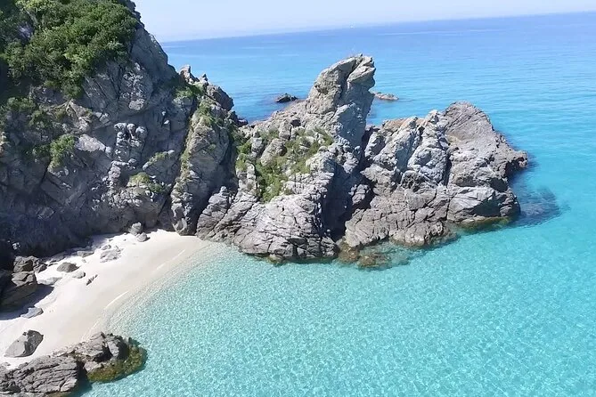 Your day includes a small-group boat ride from Tropea with an expert local skipper guiding you to hidden bays between Tropea and Capo Vaticano; sanitized snorkeling gear for underwater exploring; plenty of swim stops; a light aperitif featuring Calabrian wine plus sweet and savory snacks; bottled water; all with easy boarding close to town—just bring your swimsuit and curiosity.