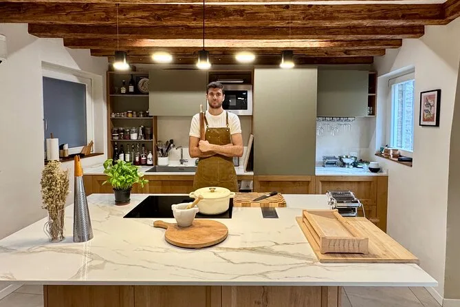 You’ll make homemade pasta or gnocchi with sauce, a Venetian starter or second course (fish/meat/vegetable), plus tiramisù for dessert.