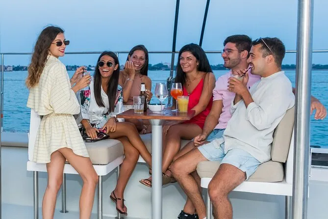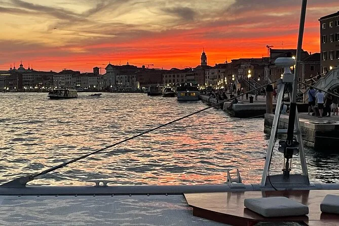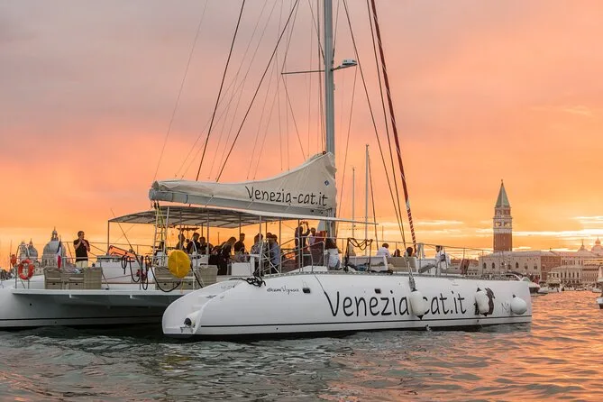 You’ll drift through Venice’s lagoon at sunset on a catamaran with live jazz saxophone in the air and a complimentary drink in hand—maybe prosecco or their apple spritz if you’re curious. Watch golden light hit Santa Maria della Salute, laugh with locals or fellow travelers, and catch those quiet moments as day turns to night across the water.