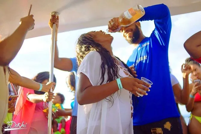 Your ticket covers entry onto a 69ft power catamaran with live DJ sets, an open bar with alcoholic drinks and sodas, plus an all-you-can-eat Jamaican buffet for both Friday night harbour cruises and Sunday trips to Maiden Cay beach—just remember your payment card and photo ID for check-in before you set sail.