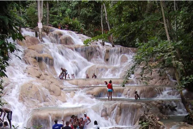 Travelers should have moderate fitness due to climbing at Dunn's River Falls.