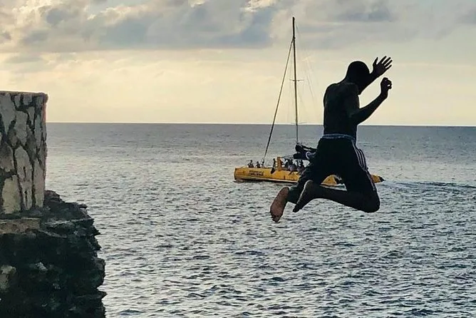 Your afternoon includes pickup by air-conditioned vehicle as you travel between 5–7 local bars along Negril’s cliffs with your guide Lenbert; stops may feature underground caves or cliff jumping spots before returning after sunset.