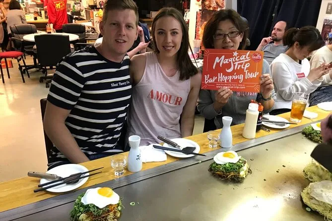 You get an okonomiyaki plate plus two additional food plates chosen by your guide at local izakayas.