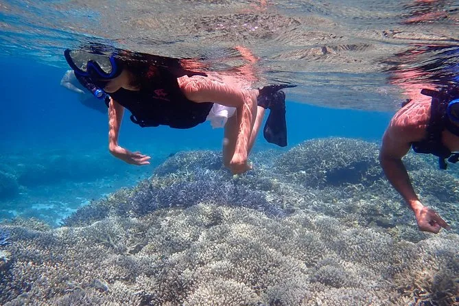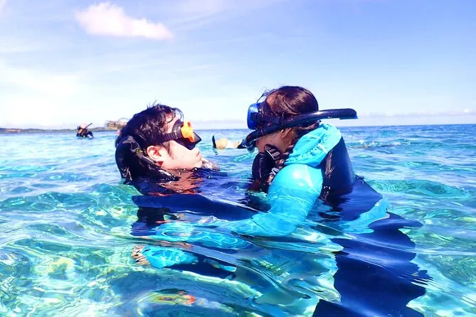 Your day includes pickup from Uehara Port or your accommodation in Uehara, all required safety equipment like life jacket and fins, liability insurance, wetsuit during winter season if needed, use of hot showers after returning to base, plus digital photos taken during your snorkeling adventure—all covered in your experience fee before drop-off back at your starting point.