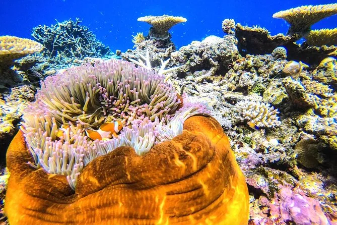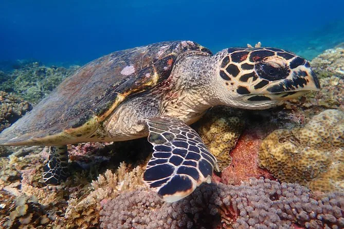 I’d never snorkeled before, so honestly, I was nervous. But Yuki handed me the mask and fins and just talked me through everything — how to breathe slow, what to do if water gets in your mask. He even double-checked my life jacket straps before we slid into the water. The reef here is wild — bright fish darting everywhere, and the coral looks like someone scattered old bones and flowers on the sea floor. At one point a parrotfish zipped by right under me; I nearly swallowed seawater from grinning.