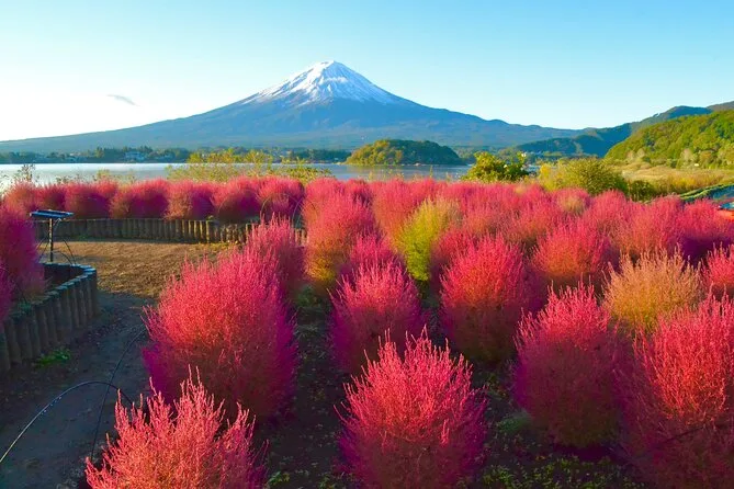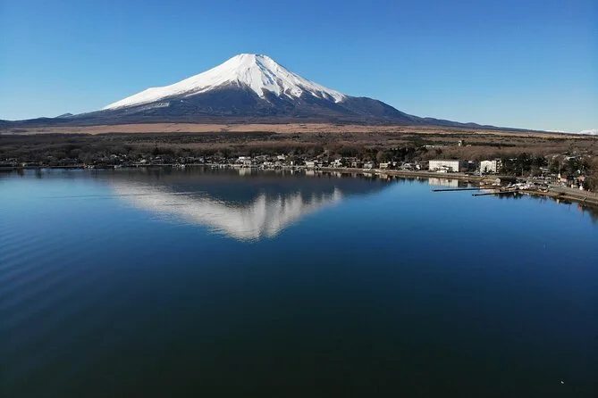 The tour lasts one full day with several stops around Mount Fuji's lakes and villages.