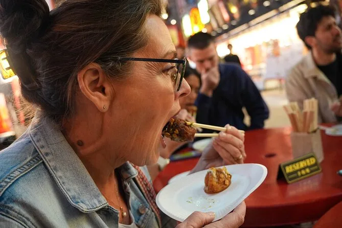 Your evening includes guided walks through five local eateries in Shinsekai with tastings of kushikatsu, takoyaki, sashimi, plus one included drink (alcoholic or not) per person. You’ll also get insights into local drink customs from your guide—and plenty of chances to chat with Osakans along the way before heading off on your own night adventure.