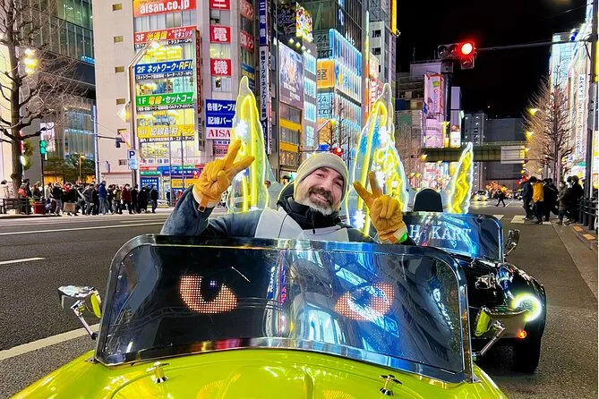 The first thing I noticed was the low hum of engines echoing off the buildings in Akihabara—kind of surreal, honestly, to be sitting at street level in a go-kart while locals hurried past with their umbrellas and neon signs flickered overhead. Our guide, Kenji, handed out these wild light-up accessories (I picked the one that looked like a dragon tail) and checked our international driving permits again—he was strict but friendly, which made me feel safer weaving into Tokyo’s traffic.