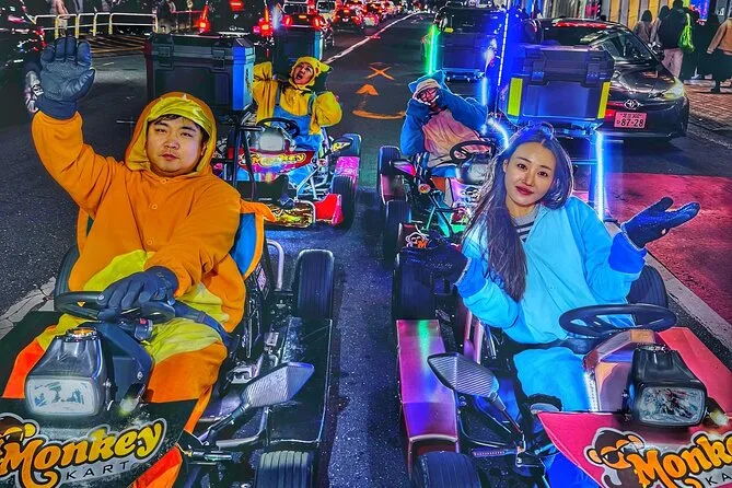 We rolled out from the Monkey Kart shop in Shibuya, helmets on and already laughing at each other’s costume choices (I went for Mario — not original, but it felt right). The city noise was everywhere — that low Tokyo hum mixed with sudden bursts of music from shopfronts. Our guide, Kenji, kept waving us forward with these big, easy gestures. I remember my hands gripping the tiny steering wheel tighter than expected as we turned toward the Shibuya Crossing. It’s wild how exposed you feel sitting so low to the ground while people tower above you, some waving or snapping photos. I caught this whiff of sweet crepe batter drifting over from a stand as we waited at the light — totally random detail but it stuck with me.