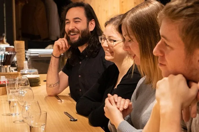 Jun explained how sake isn’t just one thing; it’s all these different flavors depending on temperature, region, even the shape of your cup (which he made me test — I still can’t believe how much it changed). He told stories about family breweries up north, his hands moving fast as he talked. At one point he handed around a snack platter — salty fish crackers, pickled veggies — and told us to try them with the next sake. The pairing actually worked; I didn’t expect that part. Someone from Osaka in our group joked about Tokyo sake being too “polite,” which made everyone laugh.
