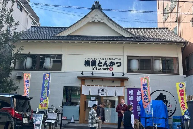 Your day includes entry to a Tokyo restaurant with its own sumo ring where you'll watch live demonstrations by retired wrestlers, enjoy a freshly prepared lunch of tonkatsu and chanko nabe (with vegetarian or pork-free options if needed), have chances to interact and even spar with the wrestlers using special costumes provided for guests, plus a souvenir photo to remember it all by before heading back out into Tokyo's busy streets.