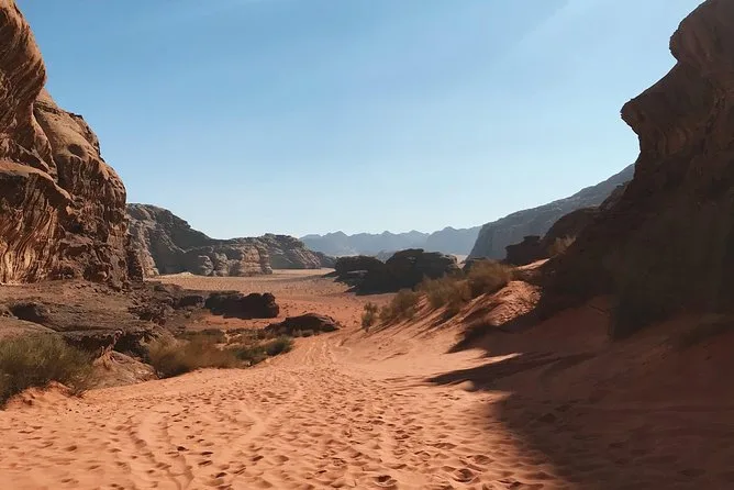 The 4x4 jeep ride through Wadi Rum lasts approximately 2 hours with a Bedouin guide.
