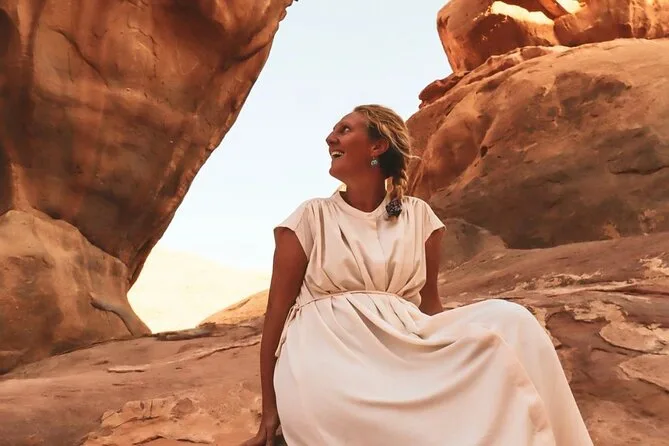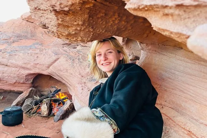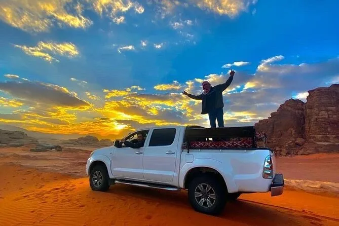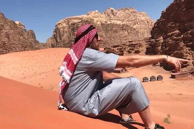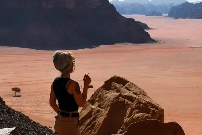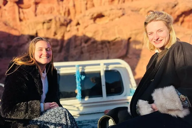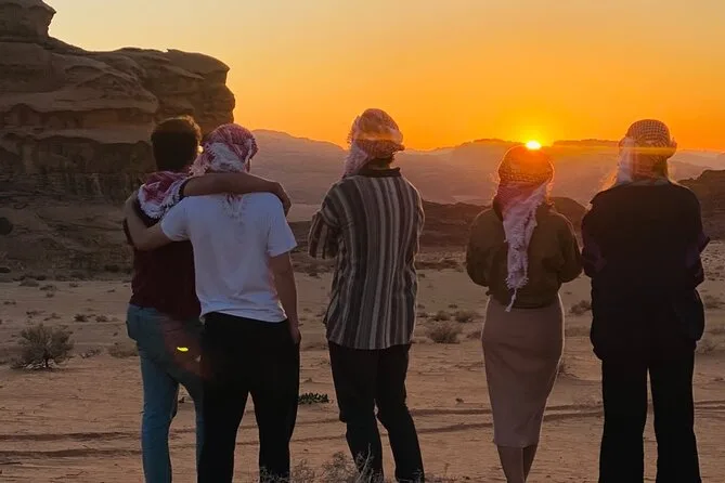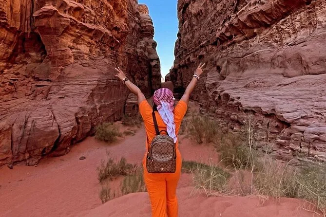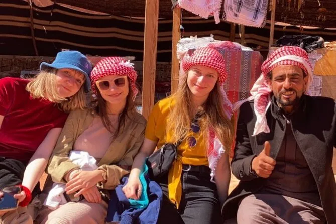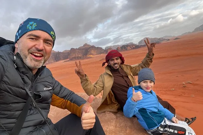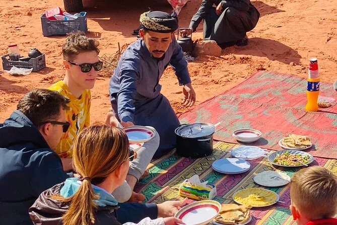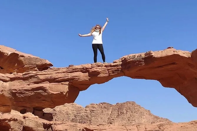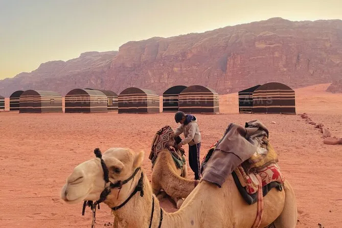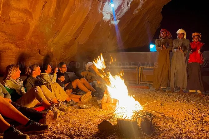 You’ll ride through Wadi Rum by jeep with a local guide, climb rock bridges, eat lunch cooked over open fire, watch sunset with Bedouin tea, and sleep in your own private tent under desert stars. Expect laughter over dinner and quiet moments that linger long after you’ve left.